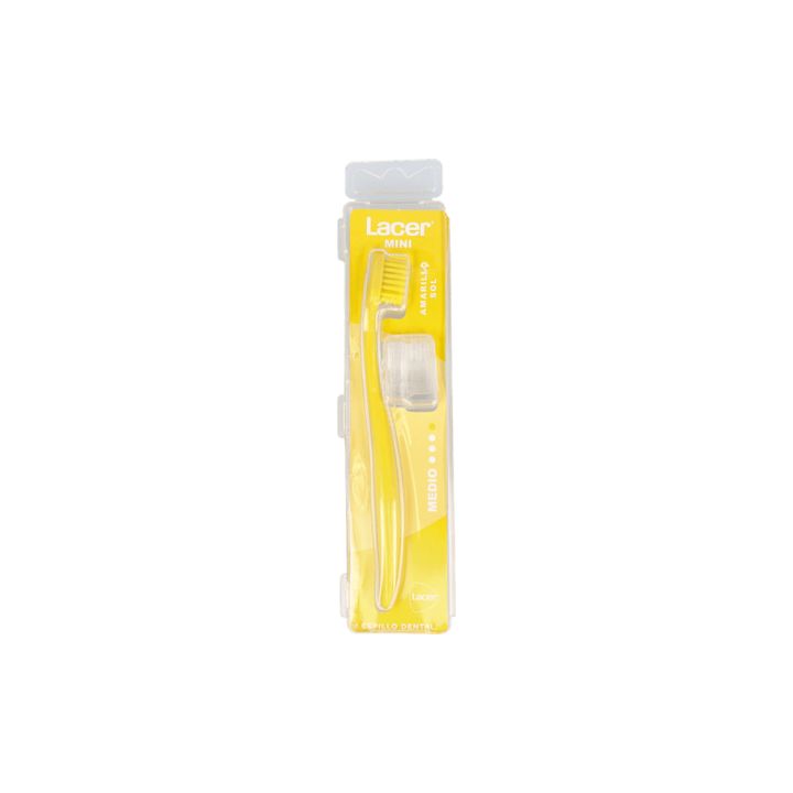 El cepillo dental Mini de Lacer tiene un cabezal de tamaño reducido y en forma de diamante para facilitar la limpieza de las zonas de difícil acceso. Su mango, más corto, permite llevarlo en el bolso dónde necesites. Cepillo dental con filamentos de dureza media que permite un fácil acceso a todos los espacios bucales. Tamaño mini para poder llevarlo cómodamente a cualquier parte. El color puede variar en función del stock disponible. Modo de empleo: Utilizar a diario de dos a 3 veces al día después de las comidas. Evitar ejercer demasiada fuerza para no dañar las encías.